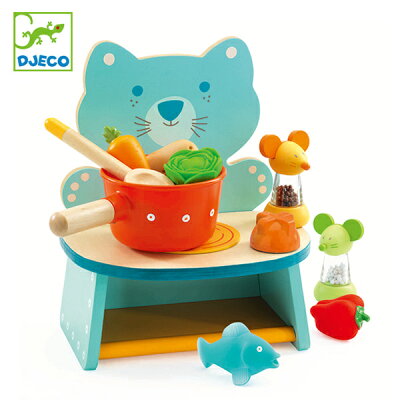 ままごと 木製 キッチン フェリックスクッカー 知育玩具 ジェコ DJECO ( 送料無料 おままごと セット 台所 コンロ 食材 鍋 魚 野菜 ごはん ねこ 2歳 3歳 )【5000円以上送料無料】